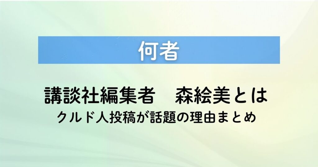 森絵美は何者?講談社編集者のクルド人投稿が話題の理由とは