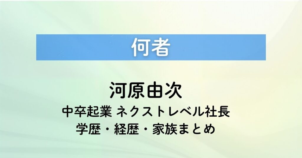 河原由次は何者?中卒起業でネクストレベル社長の学歴・経歴・家族まとめ