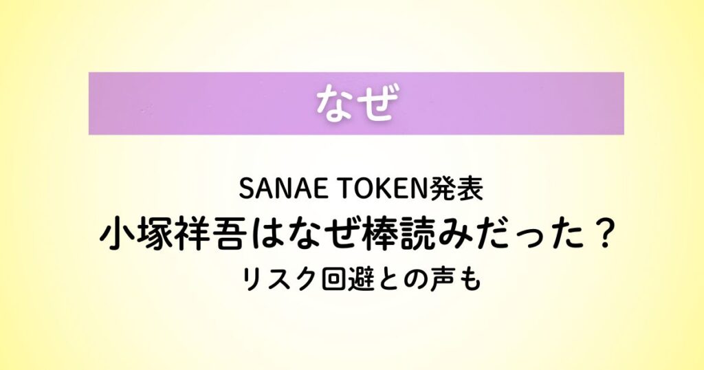 小塚祥吾はなぜ棒読みだった?SANAE TOKEN発表にリスク回避との声も