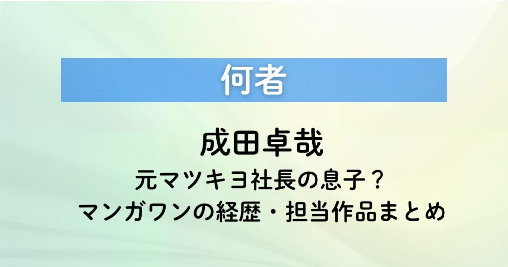 【何者】成田卓哉は元マツキヨ社長の息子?マンガワンの経歴・担当作品まとめ