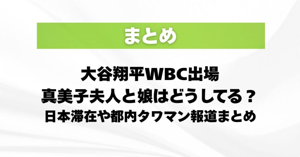 大谷翔平WBC出場で真美子夫人と娘は?日本滞在や都内タワマン報道まとめ
