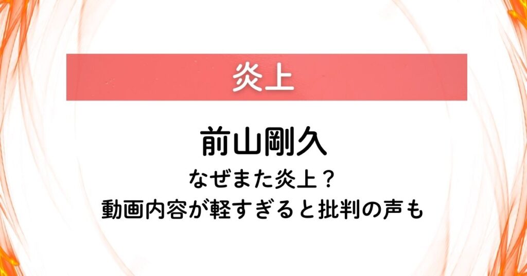 前山剛久はなぜまた炎上?動画内容が軽すぎると批判の声も