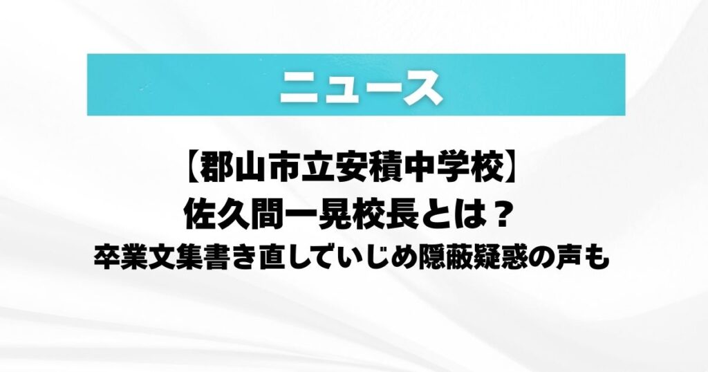 【郡山市立安積中学校】佐久間一晃校長とは?卒業文集書き直しでいじめ隠蔽疑惑の声も