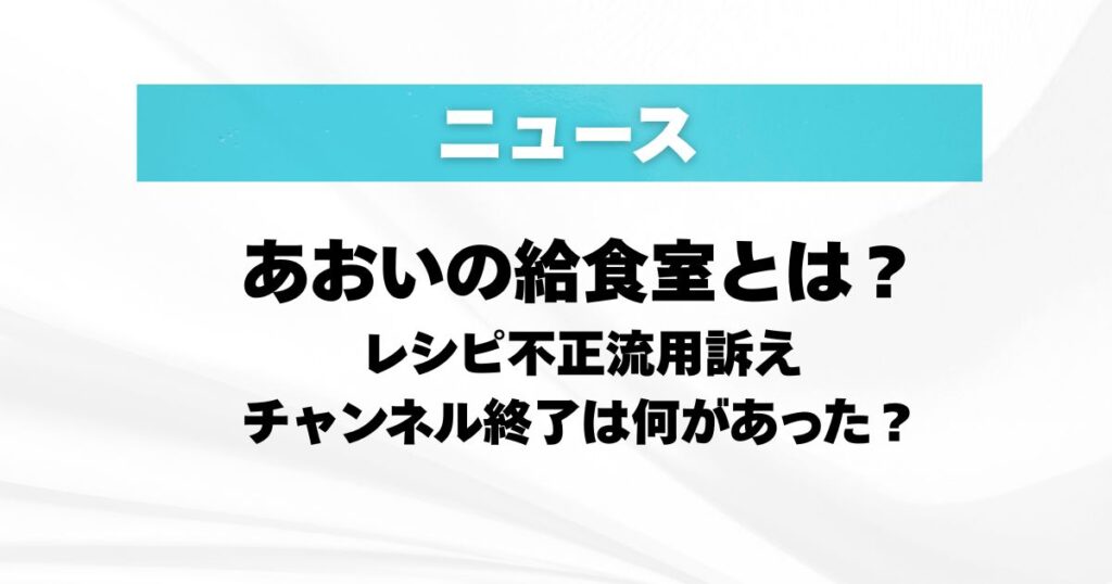レシピの不正流用を訴える発信とYouTubeチャンネル終了で話題になっている、あおいの給食室。 2026年3月5日、公式サイトで、あおいさんが発病しチャンネルを終了せざるを得なくなったと公表されました。 「あおいの給食室ってそもそも何者?」と気になった... -