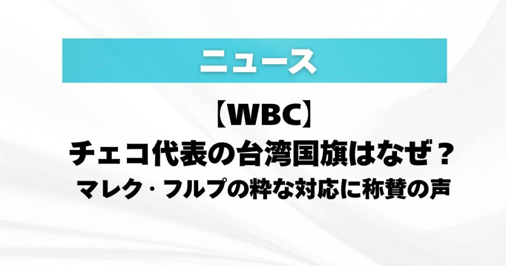 WBCで、チェコ代表のマレク・フルプ選手が台湾国旗を掲げて入場した場面が話題になりました。 SNSでは「粋だった」「スポーツマンシップを感じた」といった声が広がっています。 この場面が見られたのは、2026年3月7日に東京ドームで行われた台湾対チェコ... -
