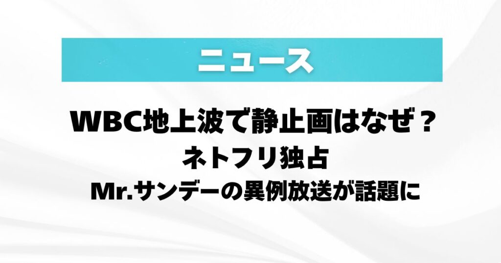 WBC地上波で静止画はなぜ?ネトフリ独占でMr.サンデーの異例放送が話題に