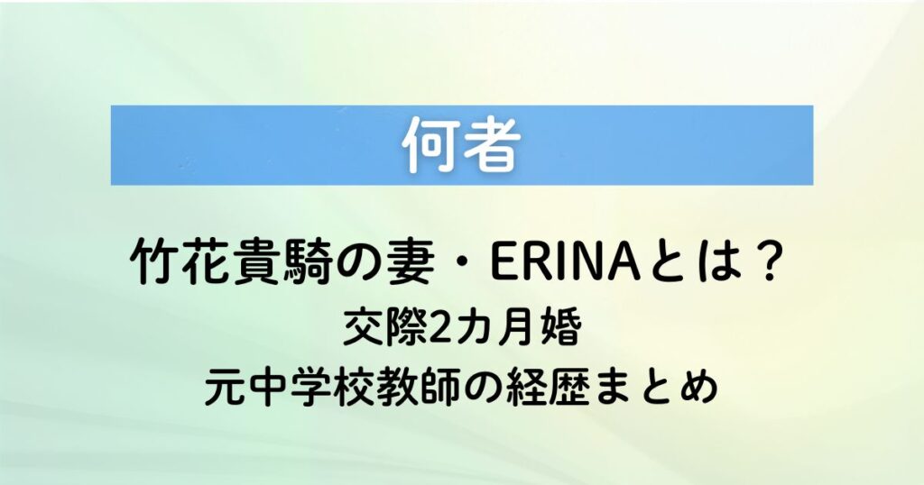 竹花貴騎の妻・ERINAは何者?交際2カ月婚や元中学校教師の経歴まとめ